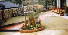 を貼り、アプローチにはレンガとサンドストーンを使用し、中間にサークルを作りイメージ