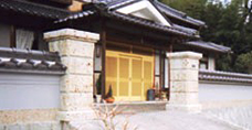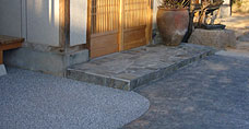 お寺の門から入った通路をバロンストーンで仕上げています。