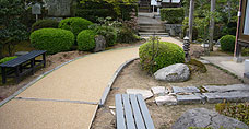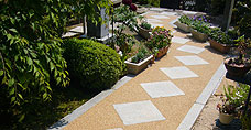 明るい色を使用しているので、落ち着いた感じの和風の庭で通路が引き立ちます。