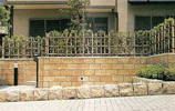化粧ブロックにもさまざまな種類がありますので、雰囲気に合った物をお選びいただけます。塀の工事と一緒におすすめしているのが「草の生えない土」です。見た目は普通の土にそっくりです。水は通すので、水たまりができる事もありません。たびたび、お墓詣りに行けない・・・という方におすすめです。(注:下の写真は土の施工はしていません)