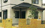 家の前にレンガ積花壇を造り、アプローチは5cm×25cmの御影石とレンガを貼りました。