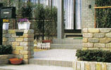 門周り・花壇を作り、階段にはバロンストーンを塗り、洗出し風に仕上げました。